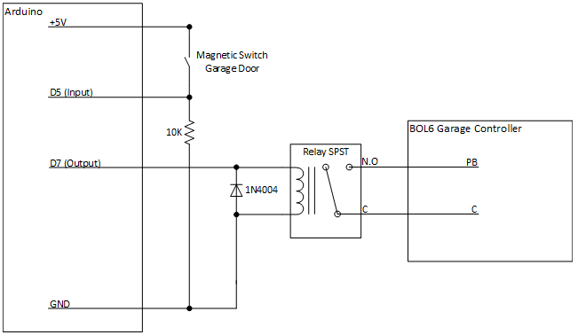 I had a tremendous amount of fun with that first system, despite its simplicity. What I needed to do now however was modify the system to allow me to determine if the garage door was open or closed. I did some more research on the BOL6 controller only to learn that even though the garage controller knows the state of the door, it’s not going to tell me. Short of pulling the unit apart and soldering directly onto the motherboard, none of the provided terminals could give me the information I sought.